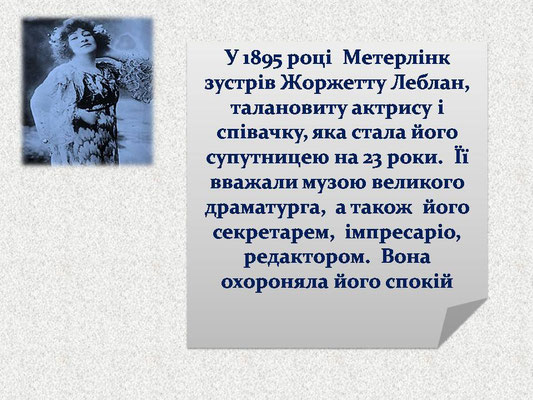 б) Зміни в драматургії на межі ХІХ-ХХ століття. Роль Метерлінка у становленні "нової драми".