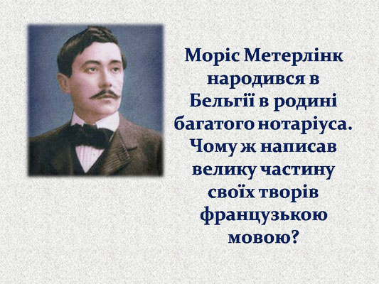 Зміни в драматургії на межі XIX–XX ст. Бельгія. Моріс Метерлінк. «Синій птах». М. Метерлінк як теоретик і практик «нової драми». Концепція символістського театру"