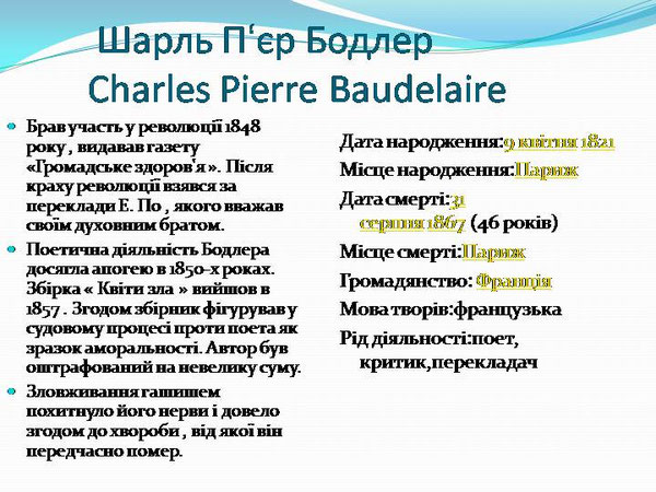 2.Заповніть таблицю "Хронологія життя та творчості Ш. Бодлера".