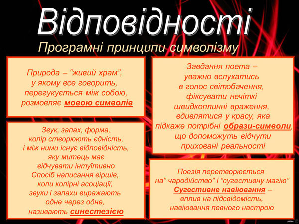 а)романтизм та імпресіонізм; б)імпресіонізм та символізм; в)символізм та реалізм.
